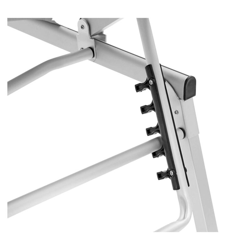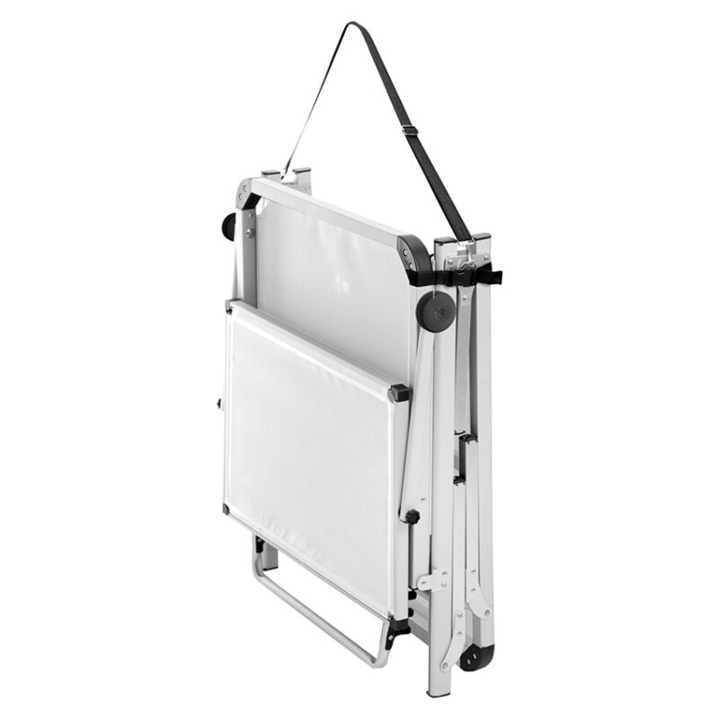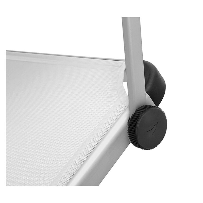 High quality sunbed with square shaped frame and three foldable legs made of anodized aluminium. The sunroof is adjustable.